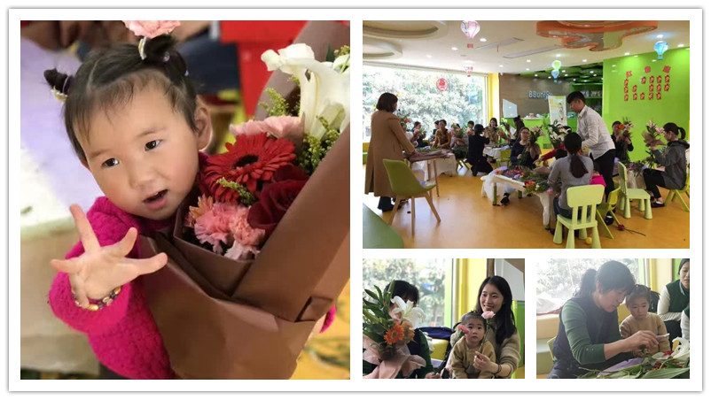花,春天的使者。插花是塑造美、展现美的艺术,它可以陶冶情操、净化心智。“三八”国际妇女节来临之际,BBunion国际早教丹阳中心特举办了以“献给妈妈的爱”为主题的花艺培训活动,以此向宝妈们送上最诚挚的节日祝福。