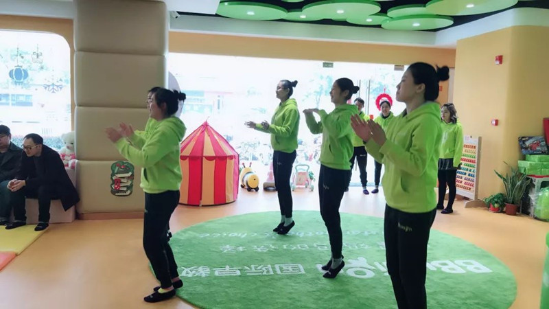 动感的音乐当然要有动感的舞蹈,看宝宝们努力跟着老师一起跳,老师们是越跳越开心!