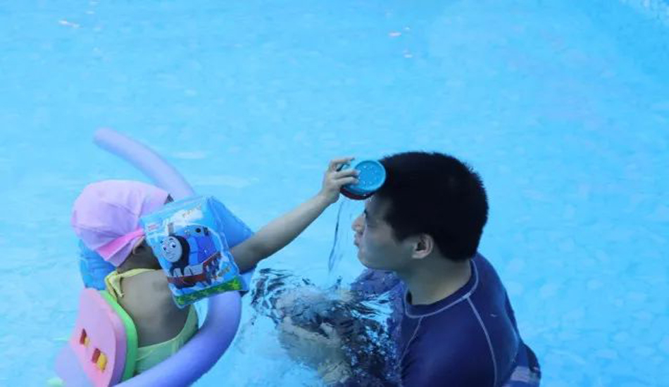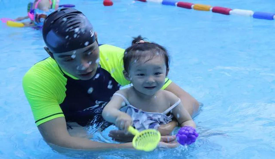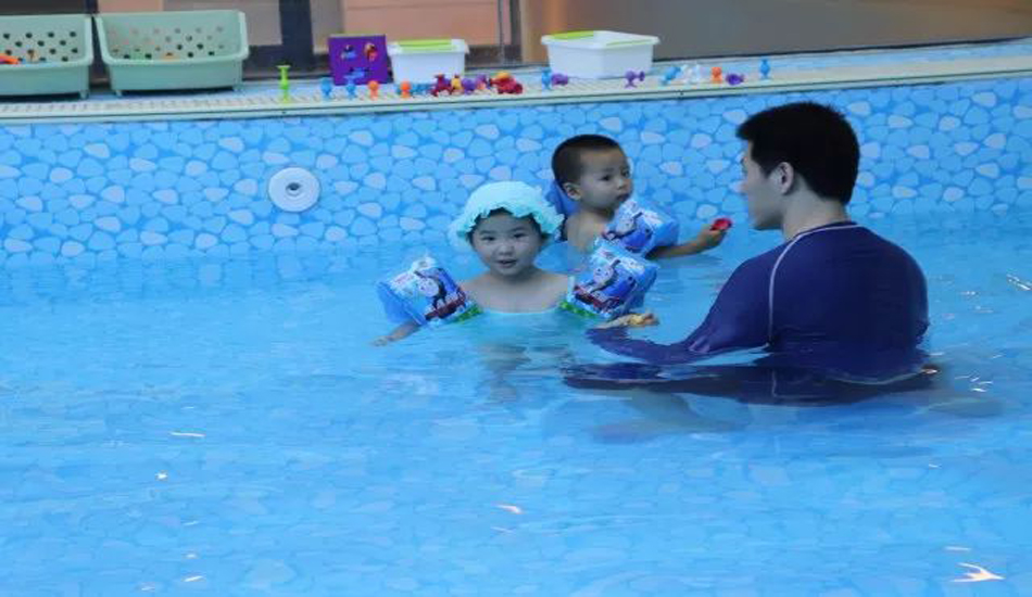 老师让宝贝们慢慢熟悉水温和水感,宝宝们对水已经没有恐惧感啦